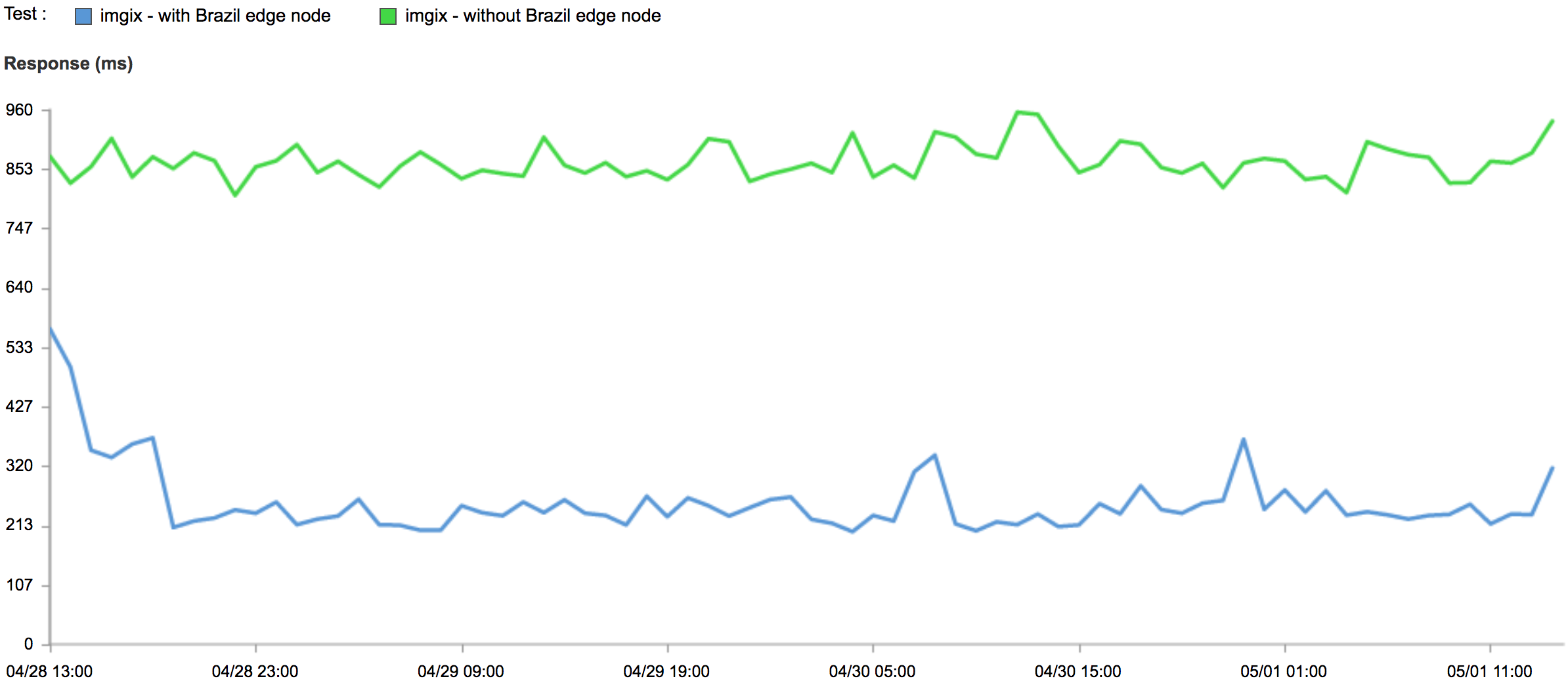 In testing, we’ve observed a 3x reduction in time-to-first-byte and as much as 5x increased throughput for many Brazilian markets with the São Paulo node. Of course, real world results will depend on user connectivity, site-specific design decisions and other localized factors. But it should lead to increased performance for many end users.
